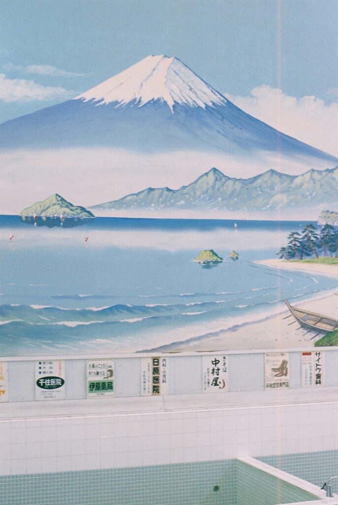 銭湯の浴槽の後ろにある壁の「富士山」の絵は「ペンキ絵」と呼ばれ、大正時代に画家に依頼したものが評判となったものが発祥です。