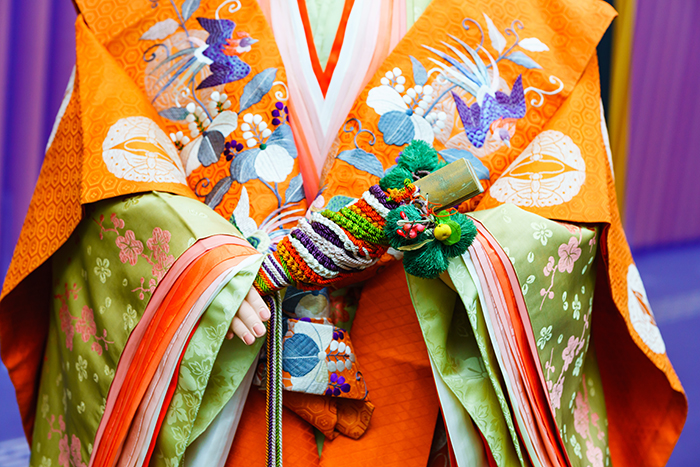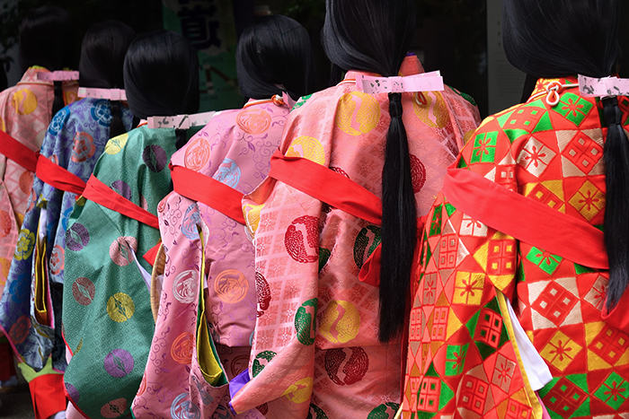 | 裳着 | もぎ | 女児の成人式。 十二単の後につける「裳」(も:スカートのようなもの)をつける。 女児の成人式では裳着に加えて、眉をそり歯を黒く染める「お歯黒」も同時に行われた。 |